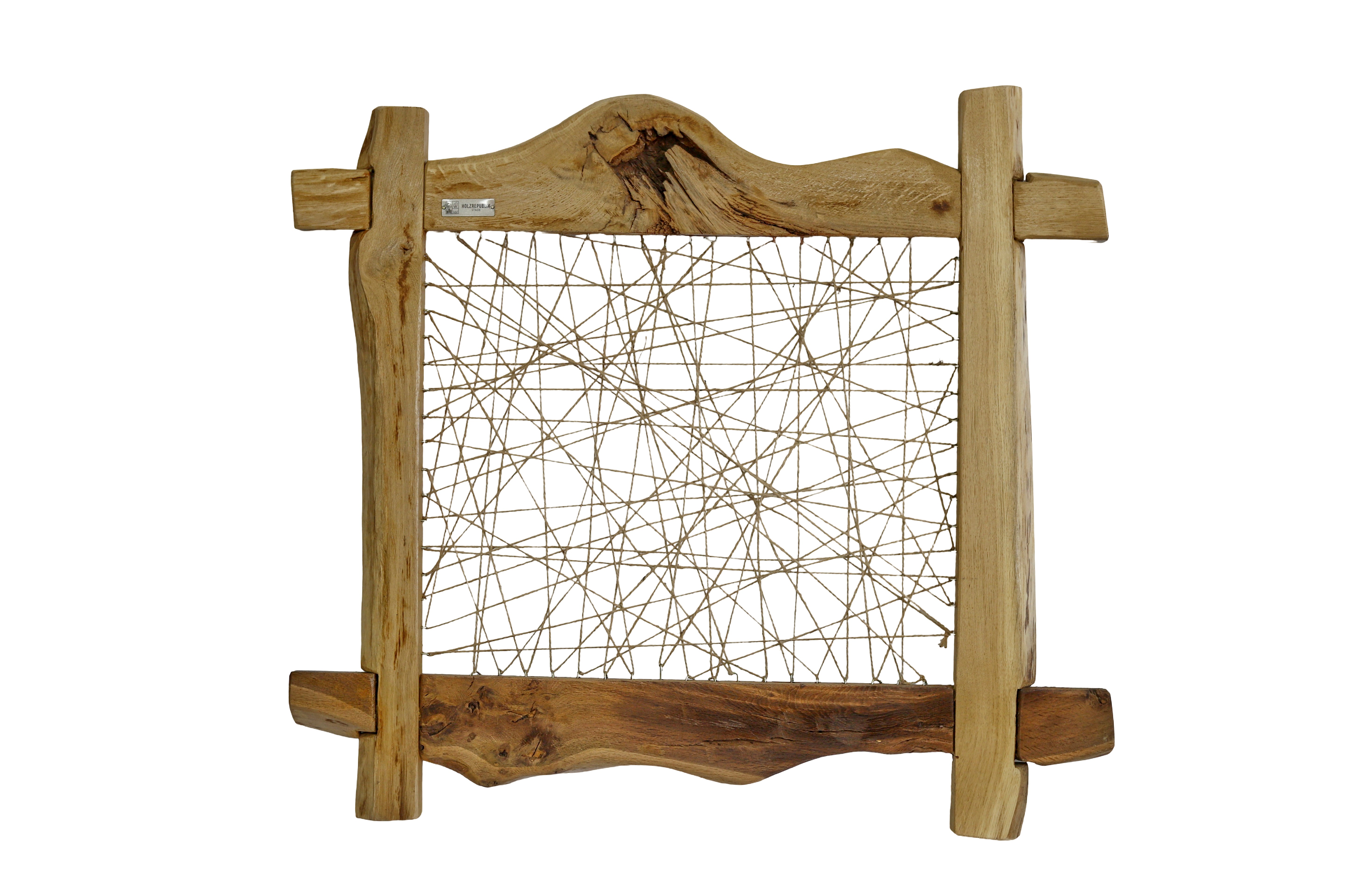 A unique wooden picture frame with ropes