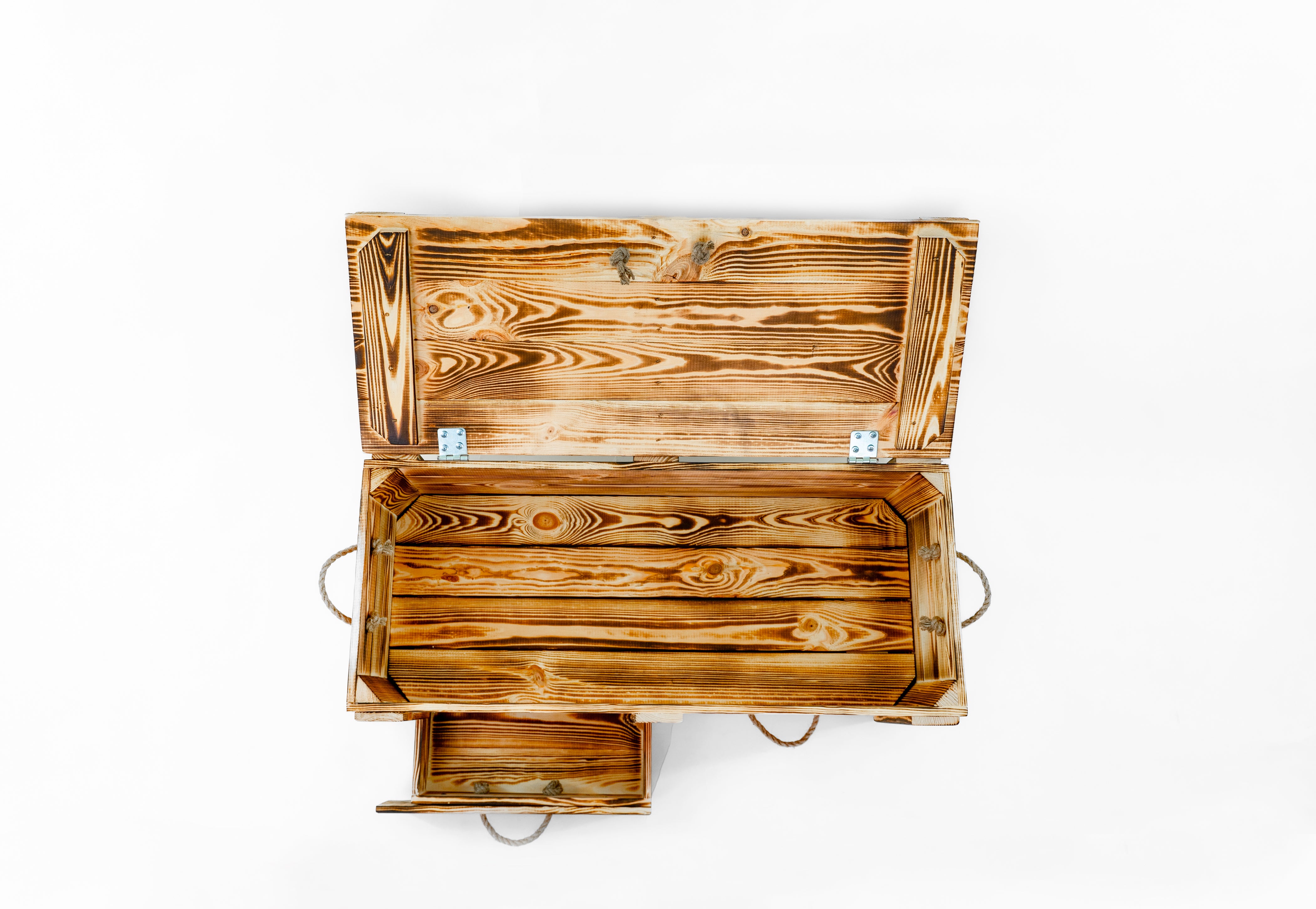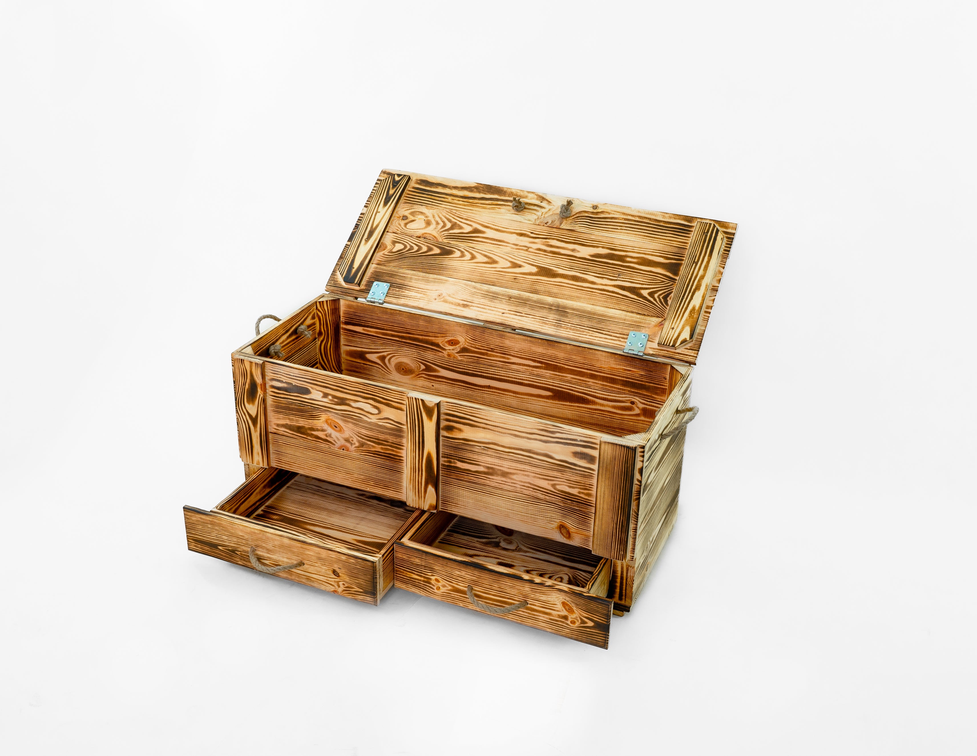 Wooden Chest / Christmas Chest Flamed 85x37.5x40 cm with tray and wooden Christmas tree