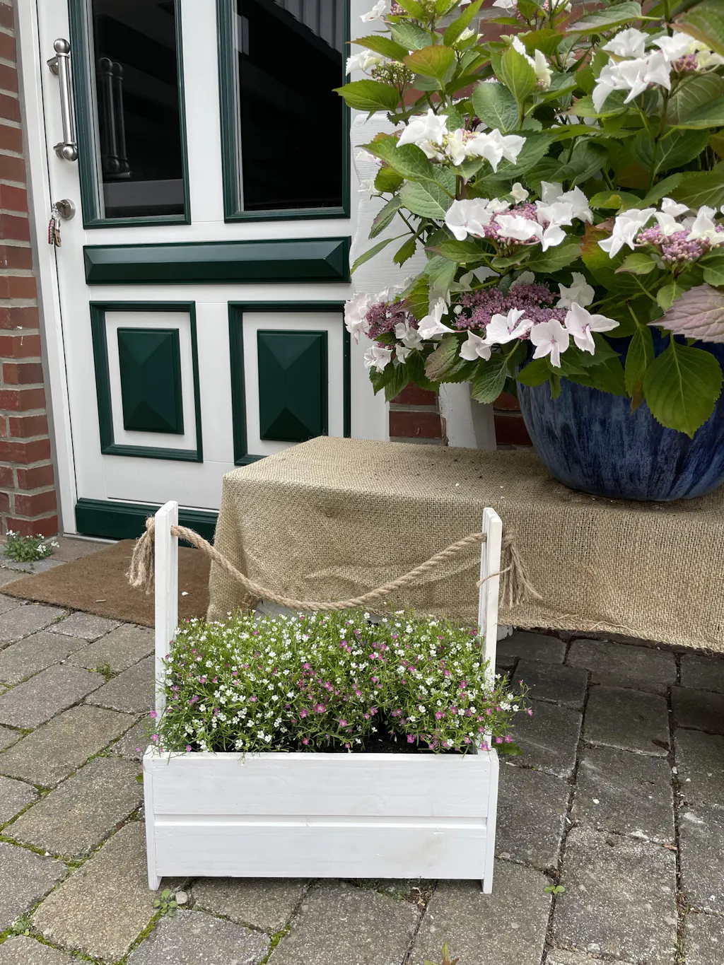Weisser Holz-Blumenkasten mit Seilgriff – rustikaler Pflanzkasten für Balkon & Garten / Dekorativer Holzkasten für Kräuter & Blumen / Handgefertigt & naturbelassen
