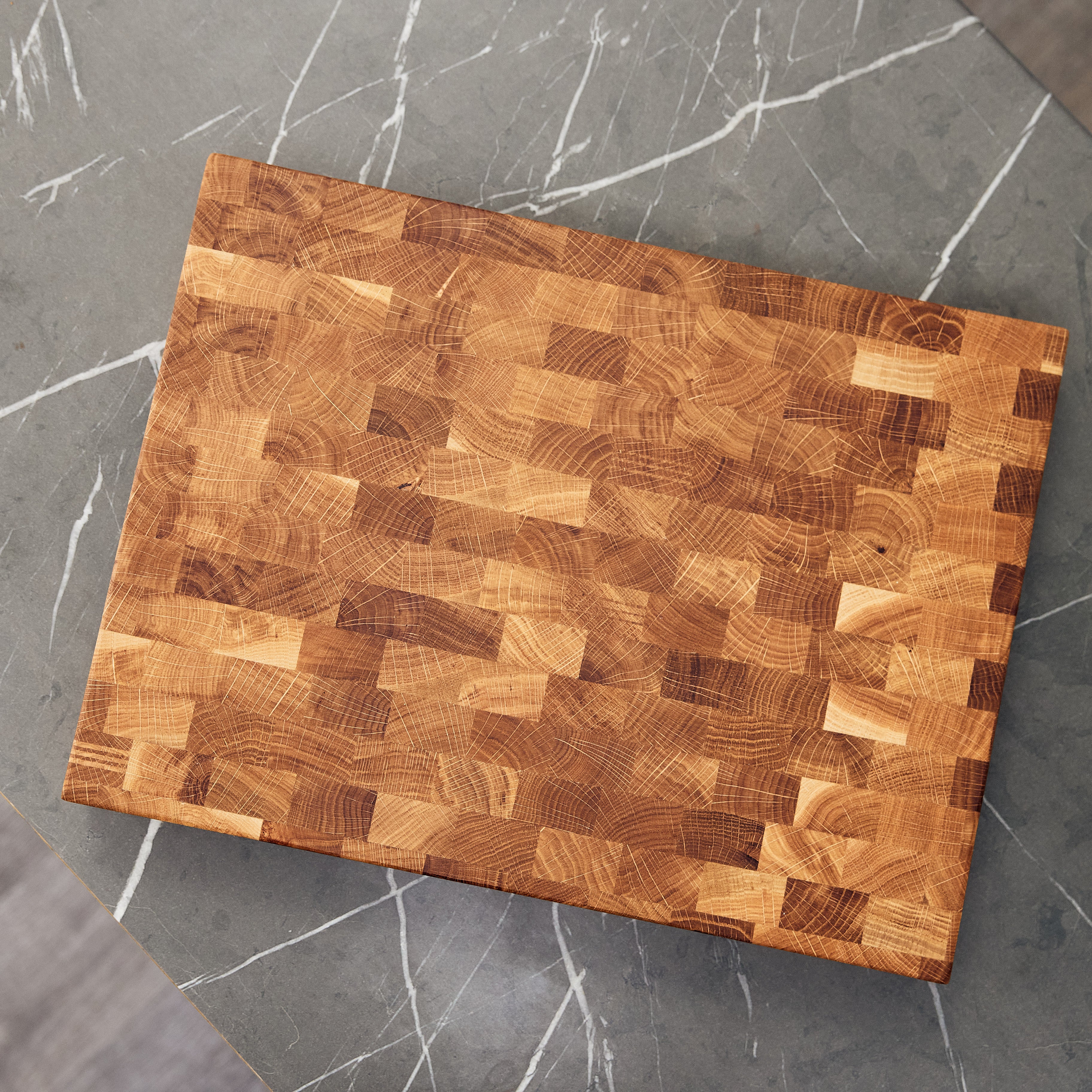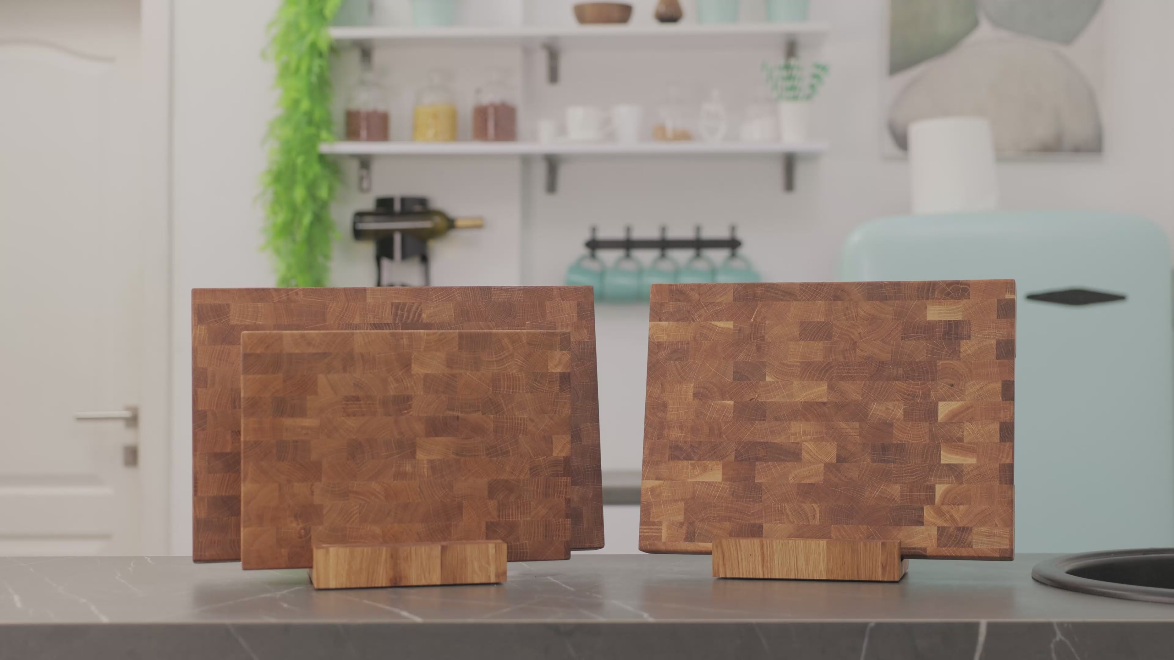 Schneidebrett aus Eichenholz mit Stirnholz – Holzbrett mit Untersetzer & Ständer / Multifunktionales Frühstücks- und Schneidebrett