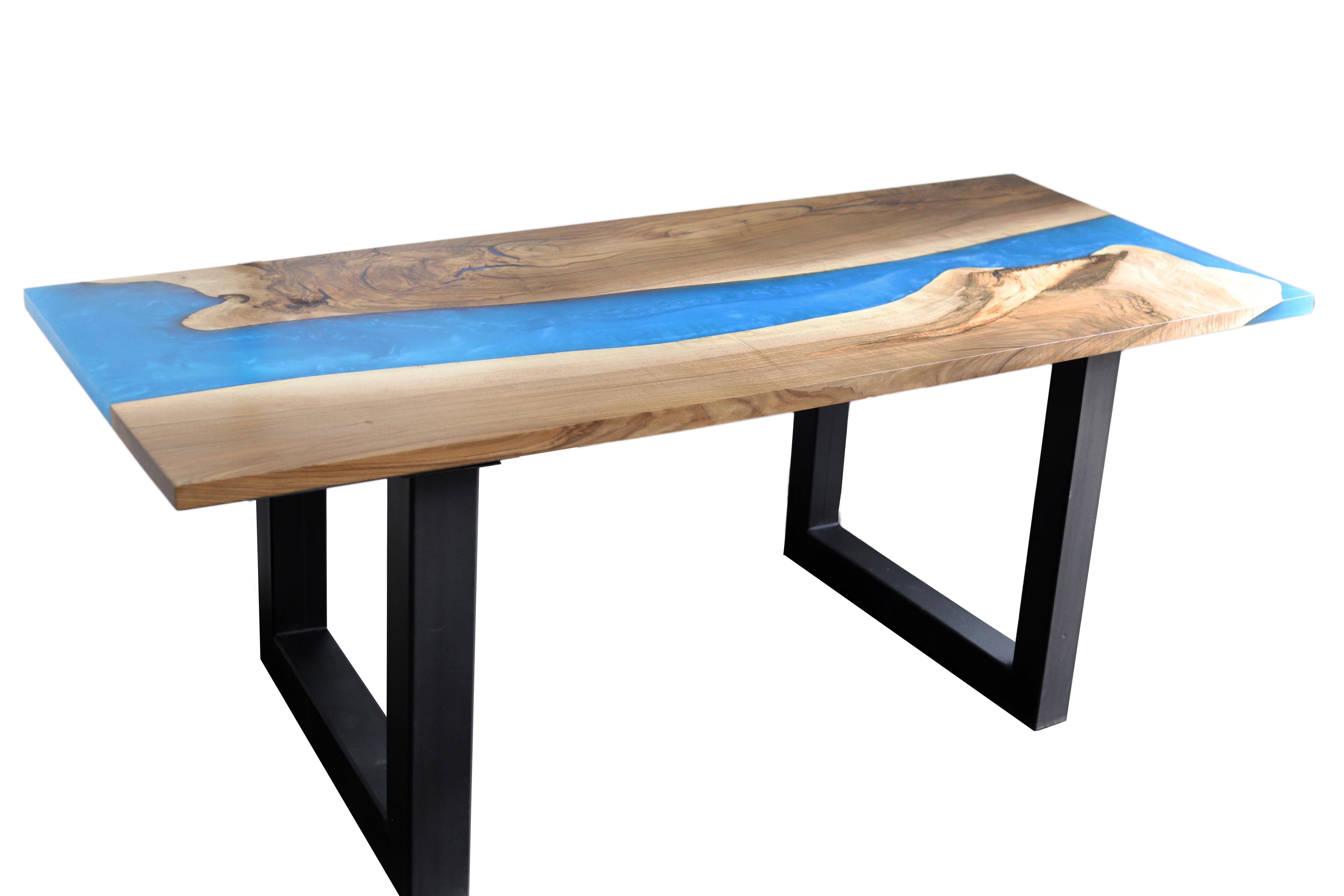- Langlebigkeit: Durch die Kombination aus sorgfältig ausgewähltem Holz und haltbarem blauem Epoxidharz ist dieser Tisch eine Investition, die Generationen überdauert.
